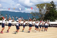 運動会の華である各学年の表現です。低学年は花笠音頭とサンバおてもやんのダンスを披露してくれました。きびきびとして、躍動感のあるダンスは低学年らしいかわいらしさだけでなく、一生懸命さも伝わり、見る人の心を熱くさせました。よくぞここまで頑張ったと感心する演技でした。