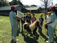 多良木町特別支援学級等合同学習会で南稜高校に行きました。子どもたちは、ずっとこの学習会を楽しみにしてきました。南稜高校の先生方や高校生の注意をよく聞き、うさぎ、ぶた、やぎ、犬、にわとり、ポニーと触れ合いました。えさをやったり、頭や背中を触ったり、そして時には追いかけられたり・・・。とても楽しい思い出になったようです。