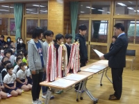 今日の全校集会は、各種表彰を行いました。図工や部活動関係など多くの分野で多良木っ子の活躍が見られ、うれしく思いました。
