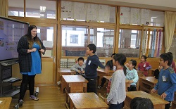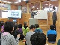 今日3・4年生の子どもたちは、沖先生、ルーシー先生と一緒にスマイルタイムの学習を頑張りました。4年生は、「In the Autum Forest」というお話をもとに、動物、体の部分、形容詞などを楽しく学習しています。今日は、ジェスチャーを取り入れた楽しいゲームで大盛り上がりでした。