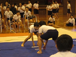 今日の昼休み、体育委員会主催の「相撲大会」が行われました。3、4年生の子どもたちが1チーム3名で出場し、熱い戦いを繰り広げていました。どの戦いも大盛り上がりでした。子どもたちの一生懸命な姿が素敵でした。優勝は、3年生の「最強チーム」でした。おめでとう。