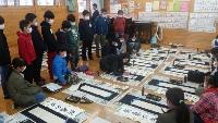 書き初めで「美しい空」という文字に取り組みました。児童は、書写指導の瀧森先生にご指導いただきながら、集中して頑張りました。2学期末から練習に取り組んでいたので、みんなとても上手に書くことができました。