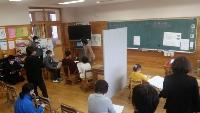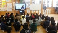 最後に、多良木中学校の英語の先生から、中学校での英語の学習について「小学校の学習をもとに、しっかり中学年生での英語の勉強をすれば、2年生や3年生の英語は難しくないので、がんばってください。」と話をしていただきました。これからも、外国の人と出会ったときでも気軽に会話ができるように、外国語活動の授業をがんばっていきます。