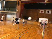 5年生の体育でソフトバレーボールに取り組んでいます。攻撃や守備のポイントを考えながらチームで作戦を練っています。次の人が打ちやすい場所にトスすることや、すぐに反応できるよう常に準備しておくこと、自分の守るポジションを把握することなど、児童同士で活発に意見が交わされ、とても楽しいです。学習の最後には、ソフトバレーボール大会を行います。