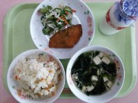 牛乳、筍ごはん、すまし汁、さわらフライ、切干大根の酢の物