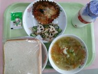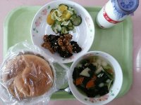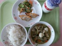今日は、給食でよく出る、中華のメニューを組み合わせました。特に「八宝菜」は中国の宮廷料理のひとつです。魚介類や肉類など具材がたっぷりで、栄養価も高く、材料の味が良く出ていておいしいです。ナムルは、ほどよい酸味がありさっぱりしているのですが、ラー油のピリッとした辛さが食欲を増してくれます。硬くて食べにくい食材はありませんが、ゆっくり噛んで食べるように心がけましょう。