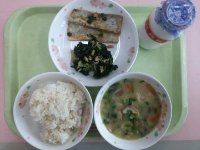今日は、いわしを骨ごと食べられる「いわしの甘露煮」を出しました。ところでみなさん、いわしは漢字で書くと魚へんに弱いと書きます。知っていましたか、これは、水から離れると腐りやすいからです。「よわし」がまなって「いわし」となったそうです。いわしは、丸干しや煮干し、めざしなどの加工品が多いのもそのためです。いわしには、血液をサラサラにしてくれる働きがありますので、残さないで食べてください。
