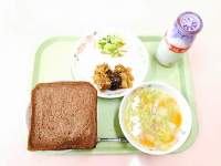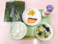 今日から来週の金曜日までの給食は「全国学校給食週間」に合わせた特別献立を実施します。特別献立1日目は、明治22年ごろの給食を再現した献立です。明治22年、山形県の小学校で家が貧しくてお弁当を持ってくることの出来ない子どもたちへ昼食を出したのが、学校給食の始まりとされています。当時の献立は、「おにぎり、焼き魚、漬け物」でしたが、それだけではみなさんに必要な栄養が満たせないので、大根のみそ汁をつけています。今から約130年前の給食です。味わって食べてみてください。来週の特別献立も楽しみにしていてくださいね。