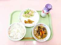 牛乳、麦ご飯、五目大豆煮、子いわしフライ、ビーフンの酢の物