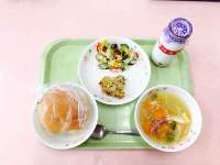 牛乳、コッペパン、ミネストローネ、ポテトサラダ