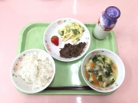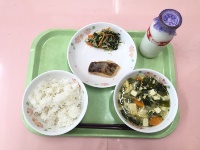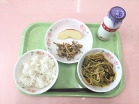 先日から続いている地震の影響で、今日の給食に使う予定だった小松菜が入荷できなかったため、献立を一部変更しています。「小松菜とひじきの和え物」から「ほうれん草とひじきの和え物」になりました。