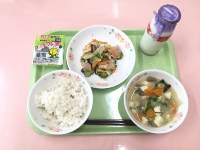 今日は中華の献立です。「八宝菜」はお肉や魚介類、野菜など、たくさんの具材を炒めて味をつけ、最後にとろみをつけて作ります。具材をたくさん使っていますので、いろいろな味が合わさっておいしく出来上がっていると思います。今日の給食もよく噛んで残さず食べましょう。