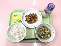 今日は中華の献立です。「八宝菜」は肉や魚介類、野菜など、たくさんの具材を炒めて味をつけ、最後にとろみをつけて作ります。具をたくさん使っていますので、いろいろな味が合わさっておいしく出来上がっていると思います。今日の給食もよく噛んで残さず食べましょう。