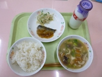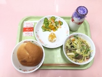 牛乳、米粉パン、ちゃんぽん、にんじんシューマイ、みかんサラダ、ミルメーク