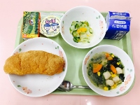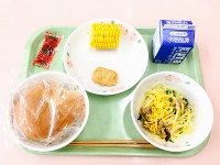 米粉パン、牛乳、冷やし中華、チキンナゲット、ケチャップソース、カットコーン