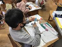 5校時に第2学年算数科の研究授業を行いました。「三角形と四角形」の単元で、三角形を直線で2つに分けたときの形を考える内容でした。子どもたちは、意欲的に活動に取り組み、頂点や辺といった用語を使って、できた図形について説明をしていました。黙々と学習に取り組む姿が素晴らしかったです。