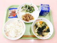 今日の給食には「豚肉の生姜焼き」があります。豚肉には、疲れを取ってくれる働きのある「ビタミンB1」が多く含まれています。しっかり食べることでみなさんの体の中から元気になります。今日の給食もよく噛んで残さず食べてくださいね。