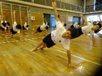 次に、組体操の一人技をしました。体全体の筋肉を使った技なので、みんなきつそうでした。これからも練習を頑張りたいと思います。