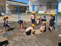 生活科の学習で、しゃぼん玉遊び・水遊び・砂遊びをしました。新型コロナ感染症拡大防止と熱中症対策のため、グループに分けてできるだけ広い場所で活動したり、木陰で休憩して水分補給をしたりしました。どうすれば大きなシャボン玉ができるか、砂が崩れないように固めるためにはどうすればよいか、子供たちはその場で創意工夫し、新しい発見がたくさんありました。