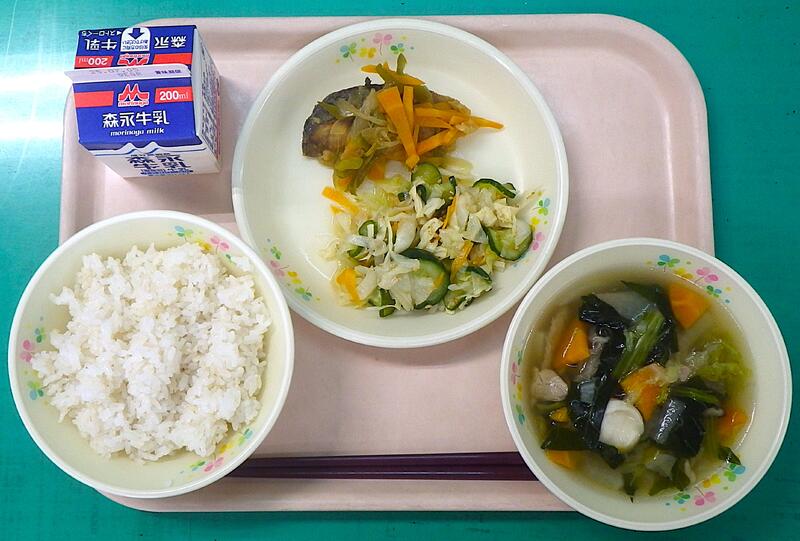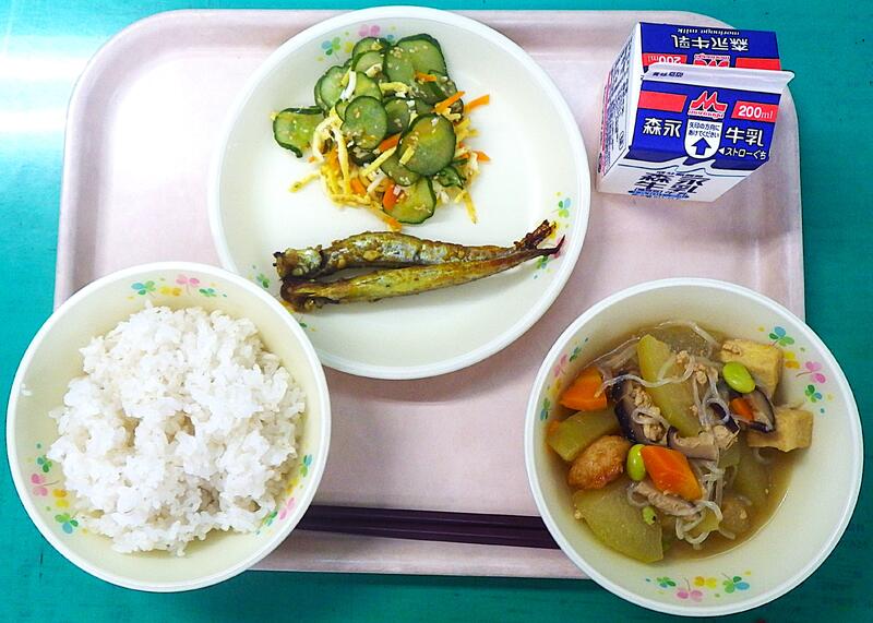 ◎あお魚の鰯、食物繊維たっぷりのゴボウ、玄米、そして野菜たっぷりのスープ、今日も健康!健康!の給食でした。新鮮で素材を生かした味付けで、今日の給食もとっても美味しかったです!