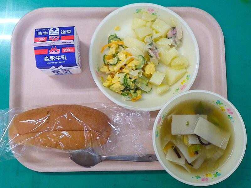 【6/25 本日の献立】セルフエッグサンド・ワンタンスープ・チーズポテト・牛乳