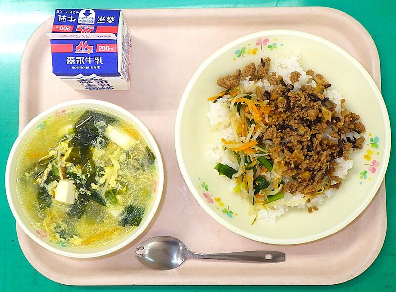 【7/2 本日の献立】セルフビビンバ丼・冬瓜の卵スープ・牛乳