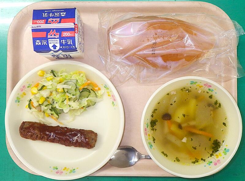 【7/18 本日の献立】鶏団子スープ・セルフツナサンド・スパイシーポテトビーンズ・牛乳