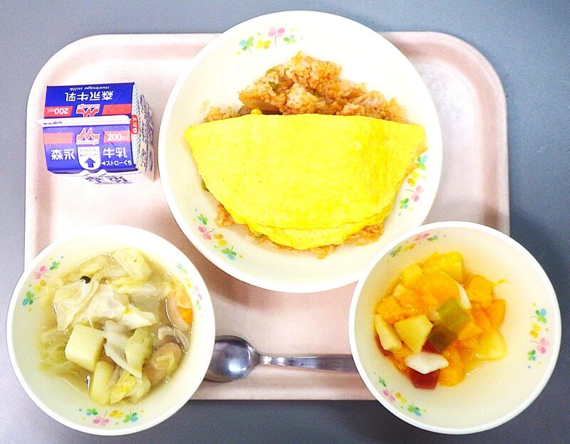 【9/10本日の献立】オムライス・ポトフ・フルーツミックス・牛乳