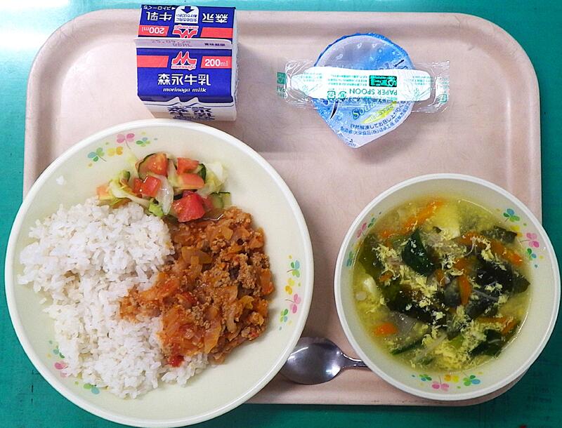 【9/17本日の献立】タコライス・冬瓜の卵スープ・ソーダゼリー・牛乳