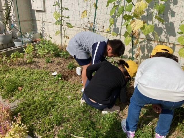 中には、「お父さんと家で植えます」など話してくれる子もいます。子供たちとのふれあいの素敵な時間になっています。