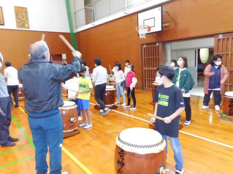 1日6時間目、4.5年生が龍神太鼓について学ぶことができました。