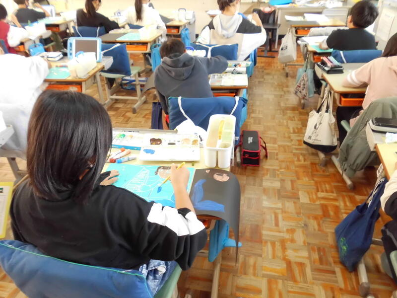版画を彫り上げた後、何度も絵の具で色をつけながら作品を完成させていきます。どんな作品ができるか楽しみです。