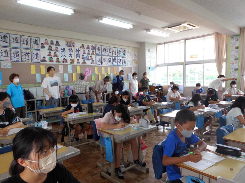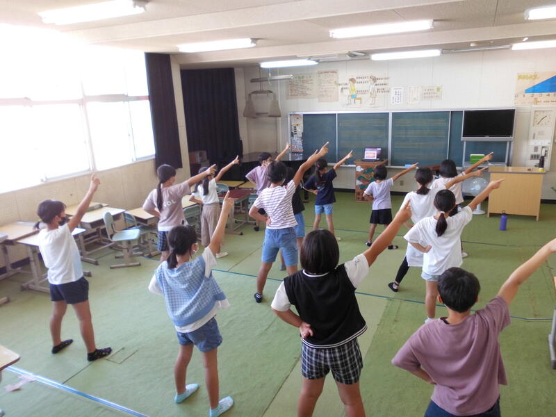 水泳時も暑さ対策で、「見学の児童は教室で自習(読書)しよう」「これから体育館で準備運動をしよう」など、対策を考えて取り組んでいます。