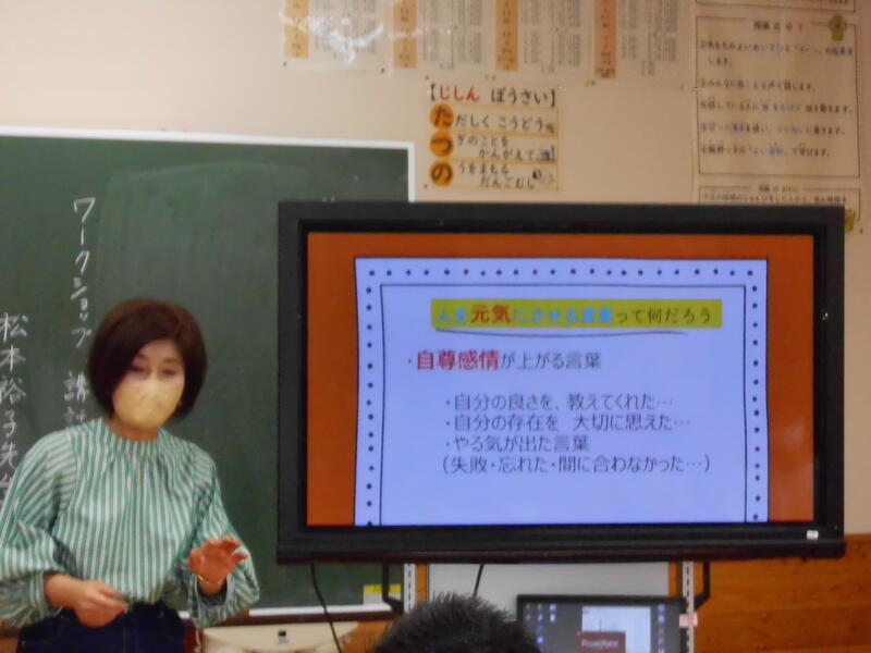24日、松本裕子教育カウンセターをお招きして、職員で子供を元気にする言葉について研修をしました。
