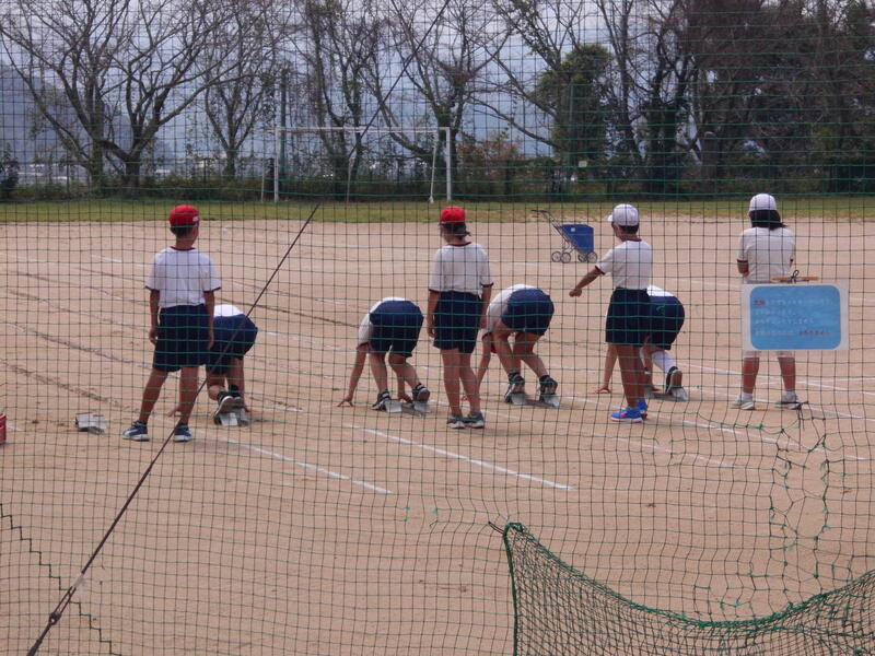 陸上記録会では、5,6年生が力いっぱい自分の力を出し切っていました。
