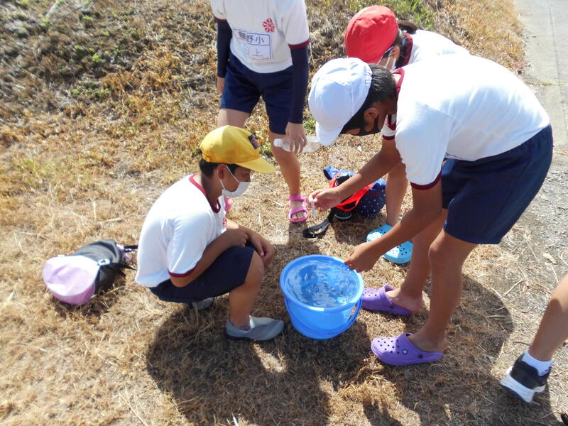 できた水鉄砲をもって運動場で遊びました。日頃熱中症対策で外で遊べない子供たちですのでとても喜んで走り回りました!途中、中村先生から水を飲むように給水タイムを取り入れ活動しました。