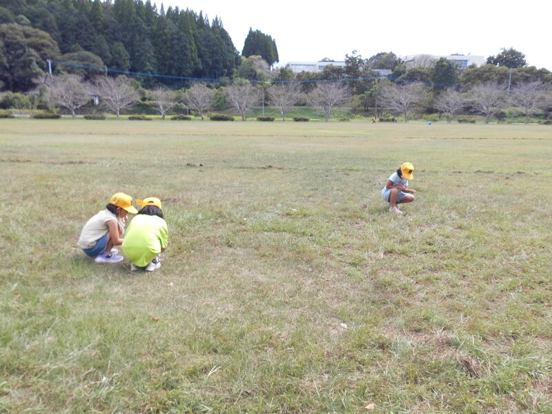 また5時間目、1年生が凌雲台で「秋を探そう」とたくさんの木の葉やドングリなど集めていました。見つけた秋で、制作活動をするということ。担任の中村先生に、たくさんの秋を伝えていました。