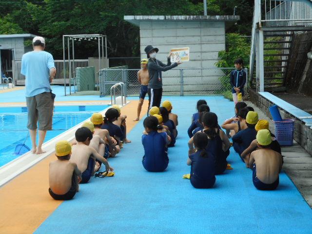 今年の第一号は4年生でした。プール開きの式で目標発表など行い、気をつけることなど確認して、プールの授業がスタートしました。