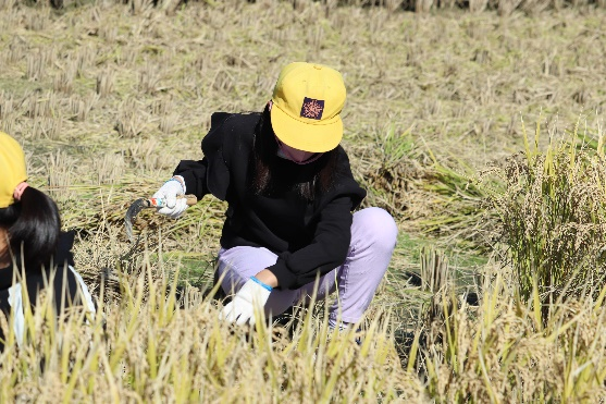 11月9日(月)に、5年生が稲刈りを行いました。当日は、天候にも恵まれ自分たちで植えた苗の成長を感じながら、ザクザクと稲刈りができました。