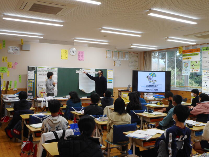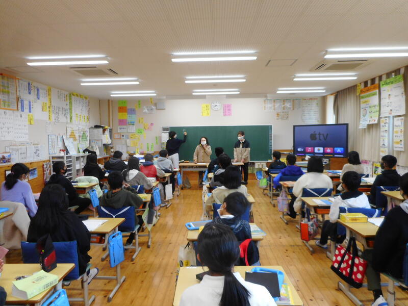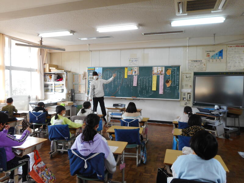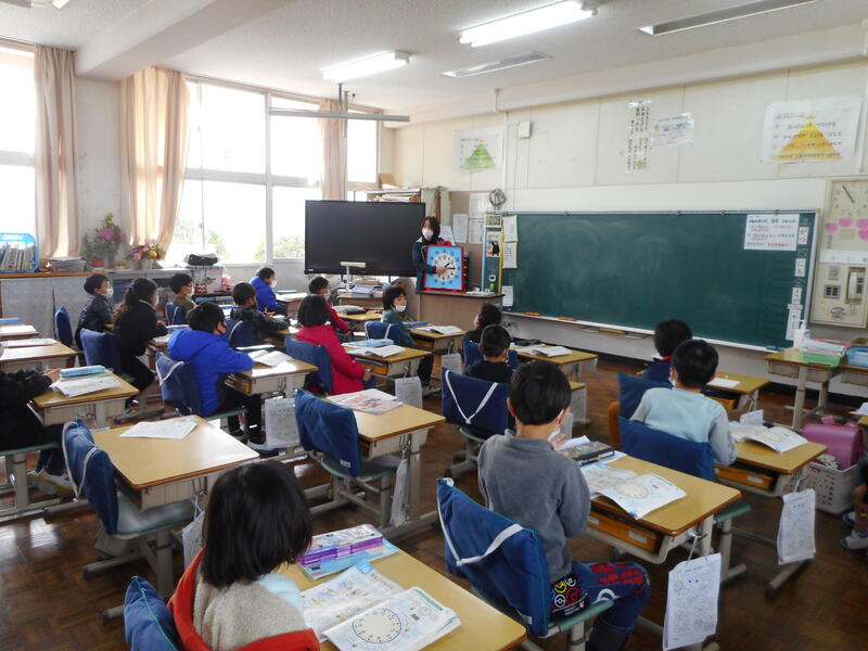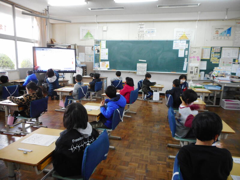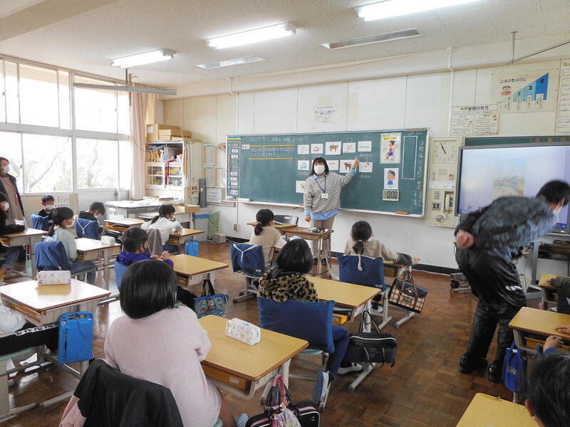 3年生は錦戸先生と一緒に外国語活動の学習をしていました。難しい発音を確かめながら学習をしています。