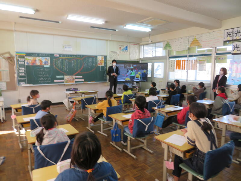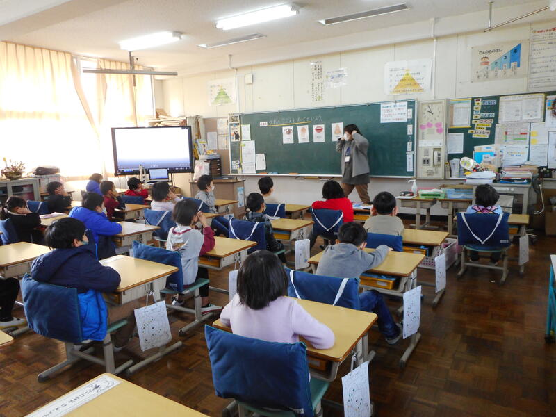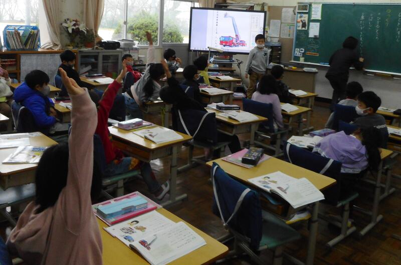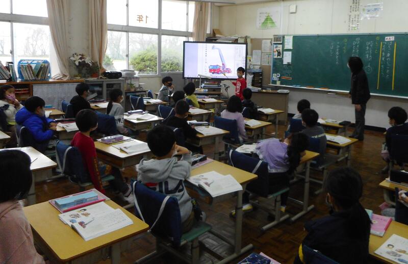 また、1年生が国語の学習で「じどう車くらべ」で自分が読み取ったことを発表していました。