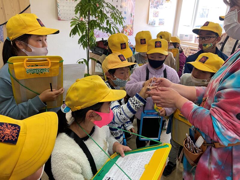 探検した場所で、自分のお気に入りの場所について写真に撮りました。これからカードにまとめていくそうです。