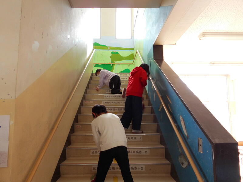 3年生の子どもたちが階段の掃除をしていました。すみずみまで時間いっぱいがんばる龍野っ子です。