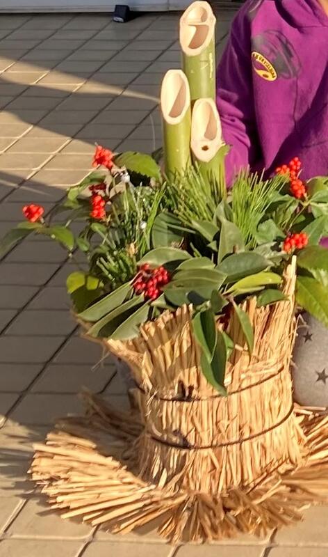 2学期も今日で終わりました。学校にはなかよし2組の子どもたちが作った立派な門松が飾ってありました。