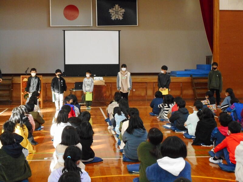 今回の発表では、「挨拶ができる龍野っ子」「ふわふわ言葉がたくさんの学校」「笑顔あふれる学校」など、龍野小をよくするためにどうしたらいいかしっかり考えて発表してくれました。