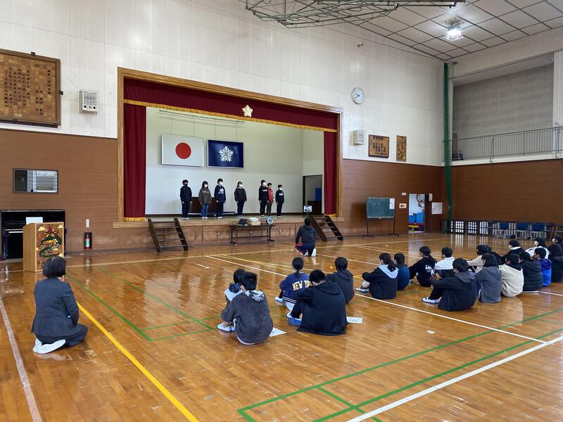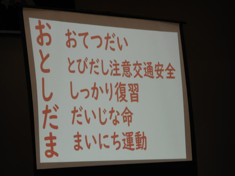また、各学年の代表が2学期頑張ったことを立派に発表してくれました。また、生徒指導の岩永先生から「おとしだま」の約束、宗先生から「メディアコントロールをしよう」というお話がありました。