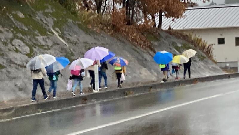 地域の方からも、並び方などずいぶん良くなったというお話をお聞きします。これは、班長のがんばりもですが一人一人の自覚も育ってきたと思います。登校班会議が終わり、各地区まで担当職員が一緒に下校しました。