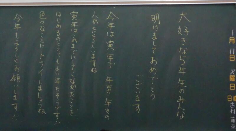 また、担任からのメッセージが黒板に書かれている教室もあります。子どもたちへの思いがつまったメッセージです。