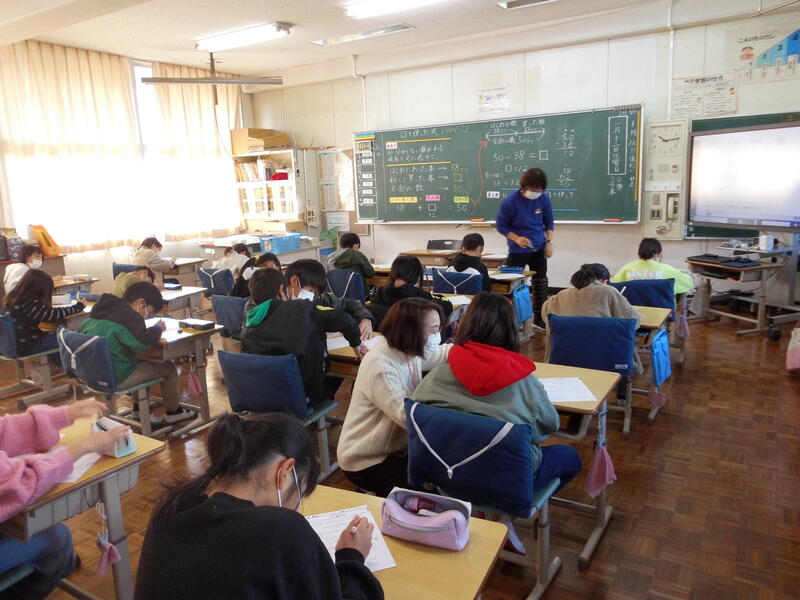 2年生は算数の授業で黙々と取り組んでいました。最初教科書の問題をみんなで取り組み、そのあとプリントに挑戦しました。とても真剣に学習する姿が見られました。