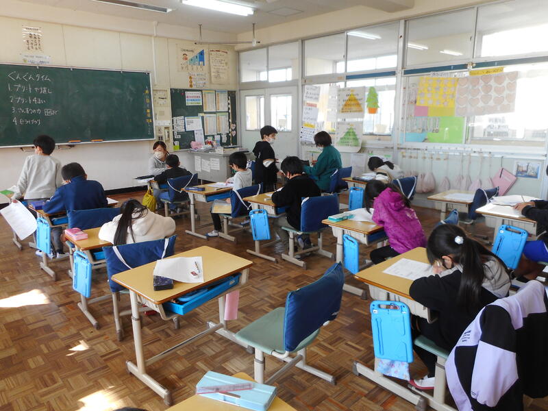 今回は変速時間での授業参観で、午後から4時間目1,2年、5時間目3,4年、6時間目5,6時間目に実施しました。それぞれの学年が真剣に学習する姿を見ていただきました。